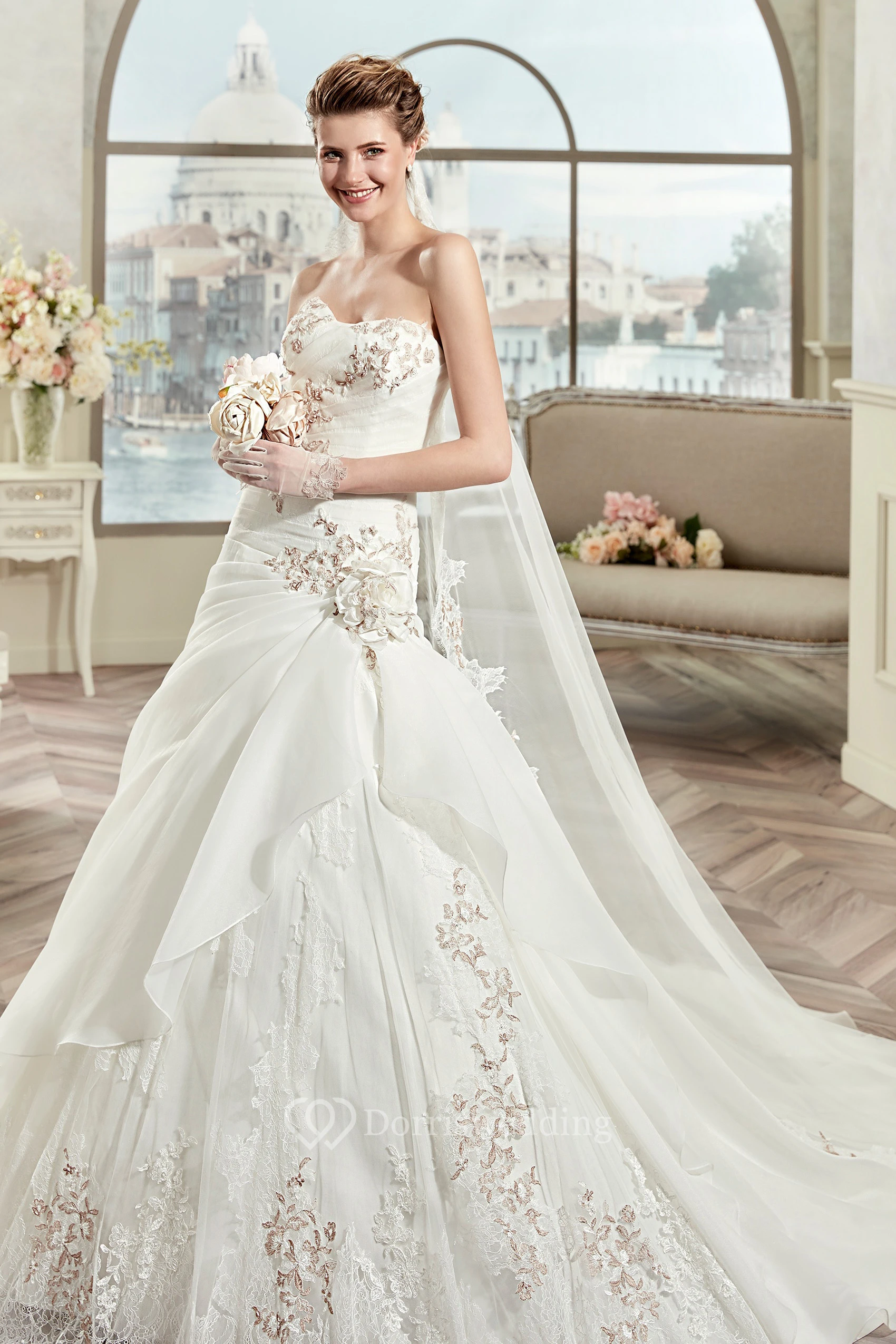 • Embellishments: Flower(s), Draping, Appliques