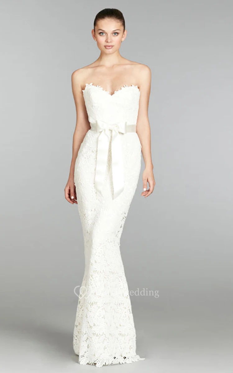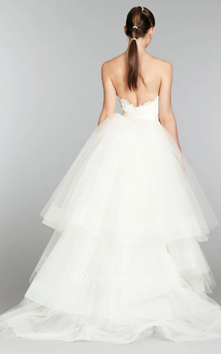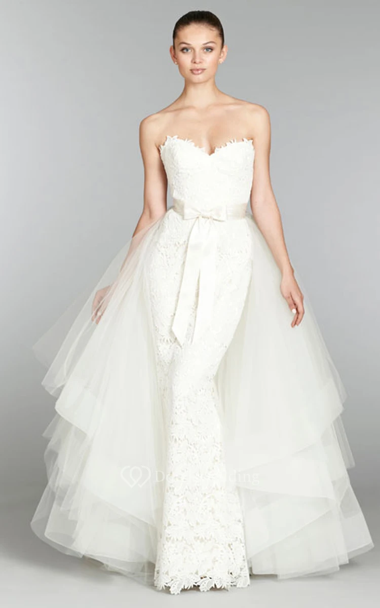 Unique Sweetheart Neckline Lace Dress With Detachable Tiered Tulle Train