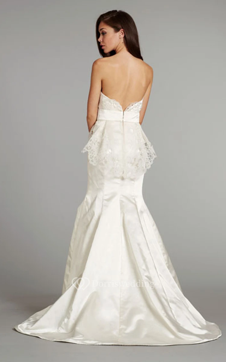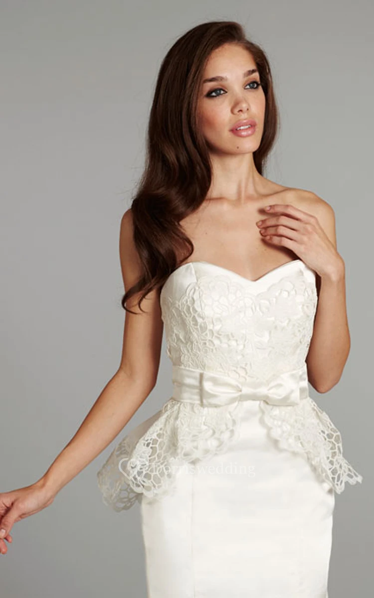Unique Sweetheart Neckline Satin Dress With Removable Peplum and Bow Detail