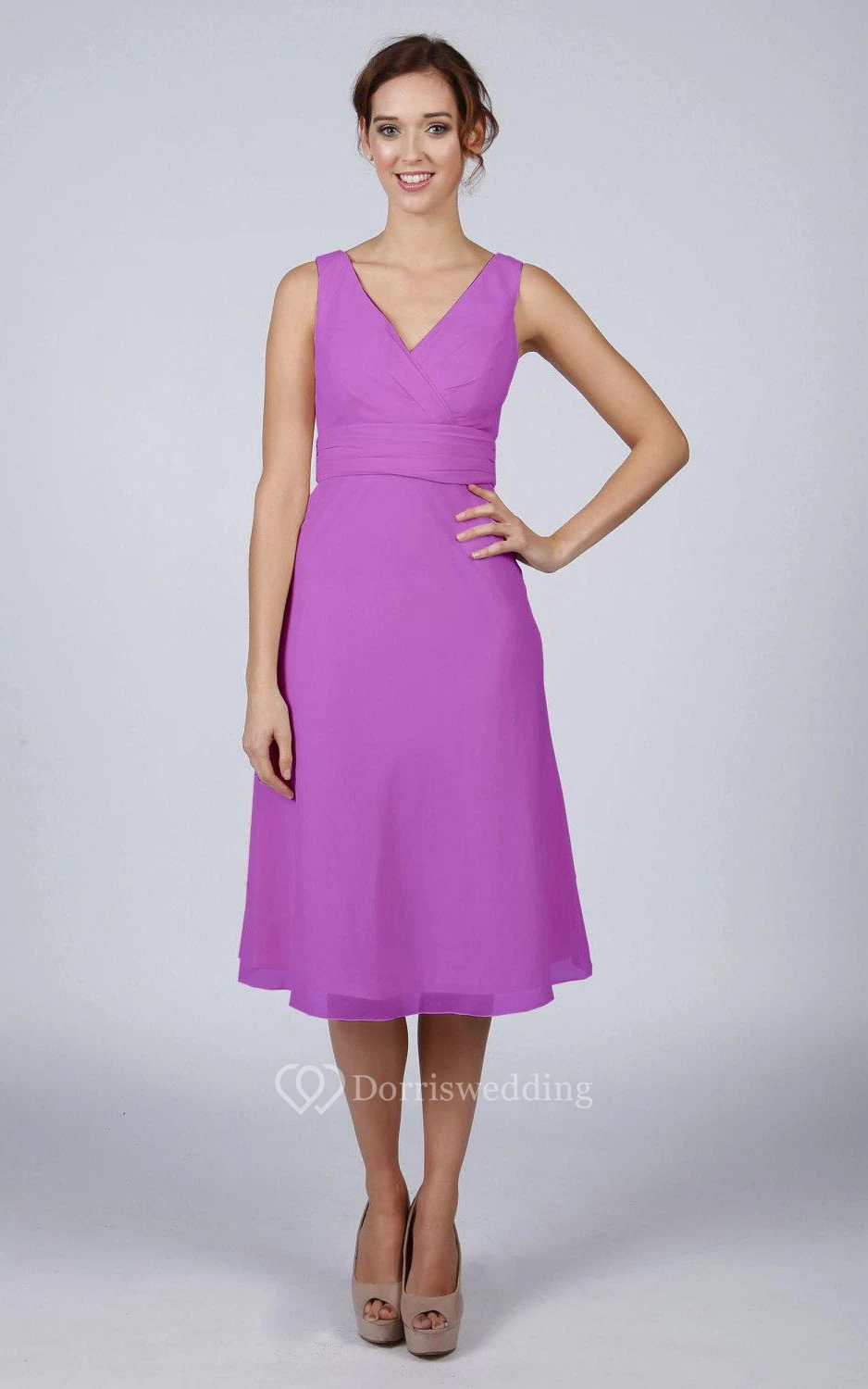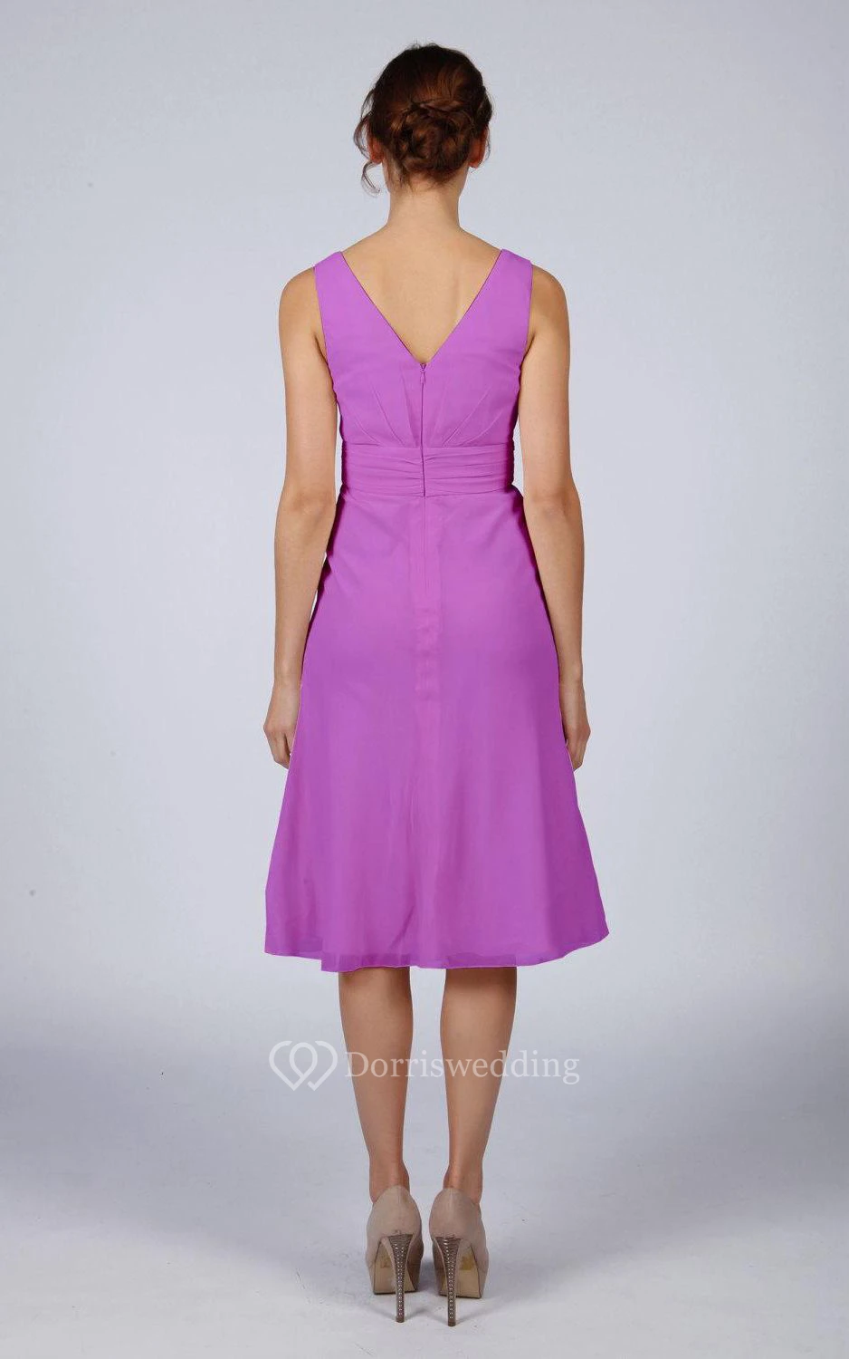 V Back V Back A-line Chiffon Short Dress Violet