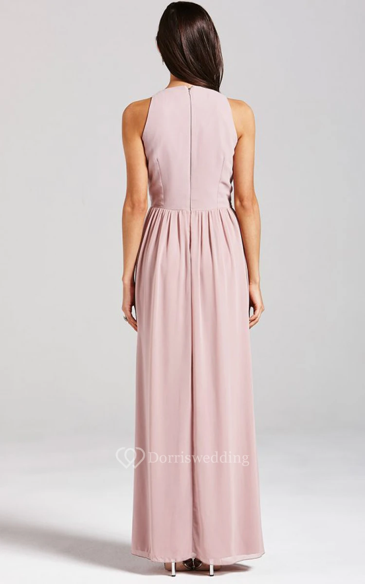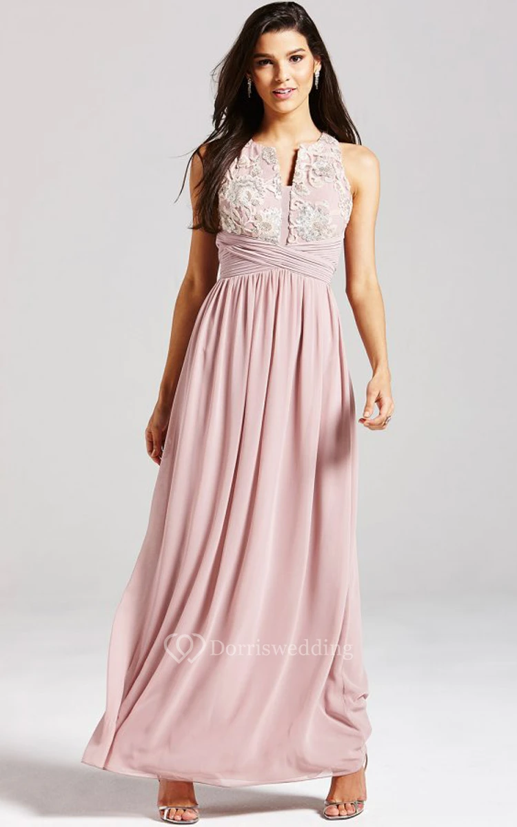 V-Cut Neckline Sleeveless Dress With Lace Detail