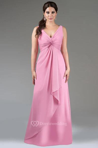 V Neck A-Line Chiffon Long Bridesmaid Dress With Cascading Skirt