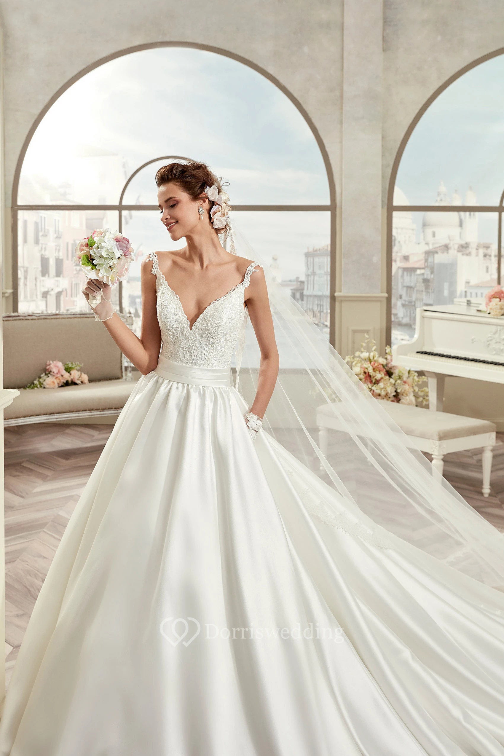 • Hemline/Train: Floor-length