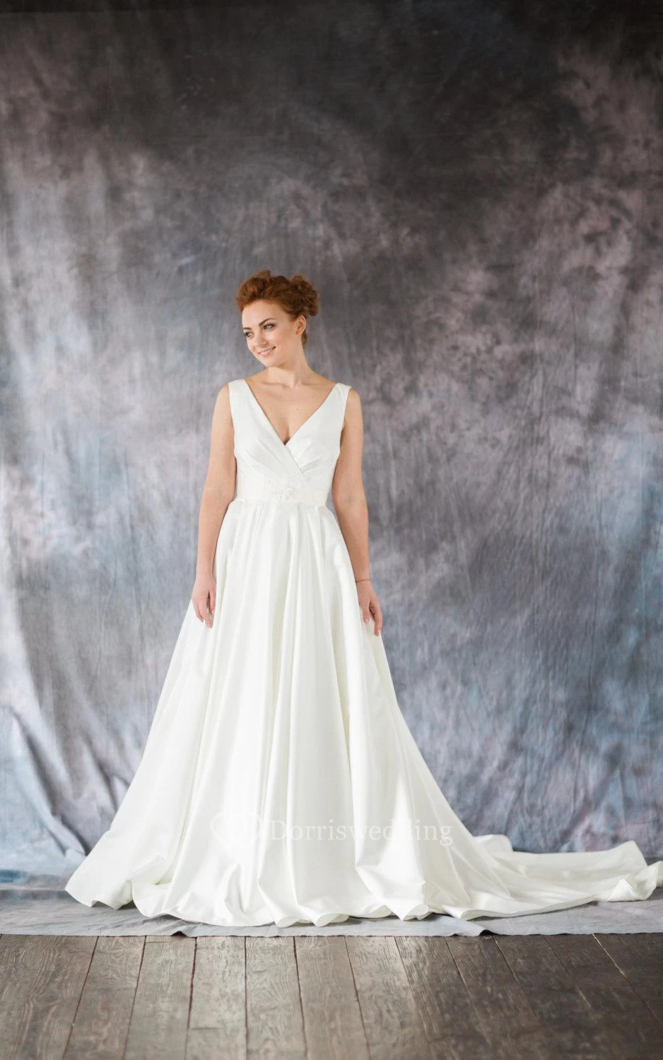 • Hemline/Train: Floor-length, Chapel Train