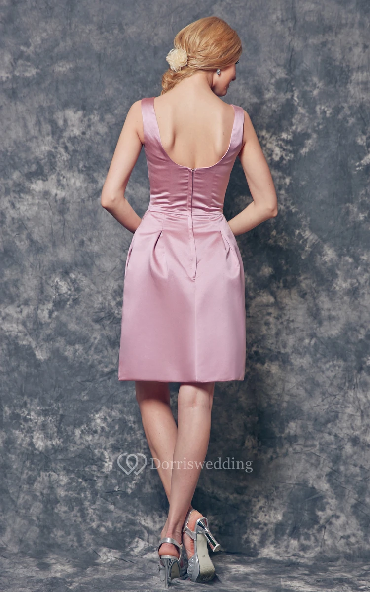 V-neck A-line Short Satin Dress With U Back