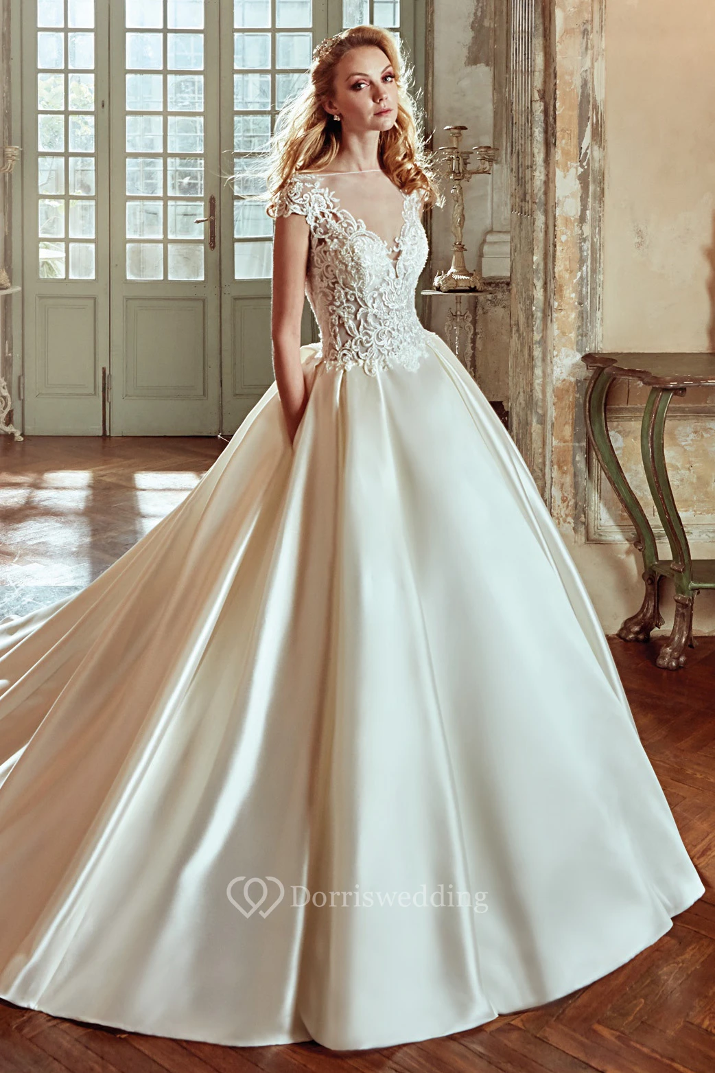 • Hemline/Train: Floor-length, Court Train
