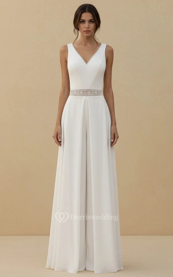 V Neck A-Line Wedding Jumpsuit
