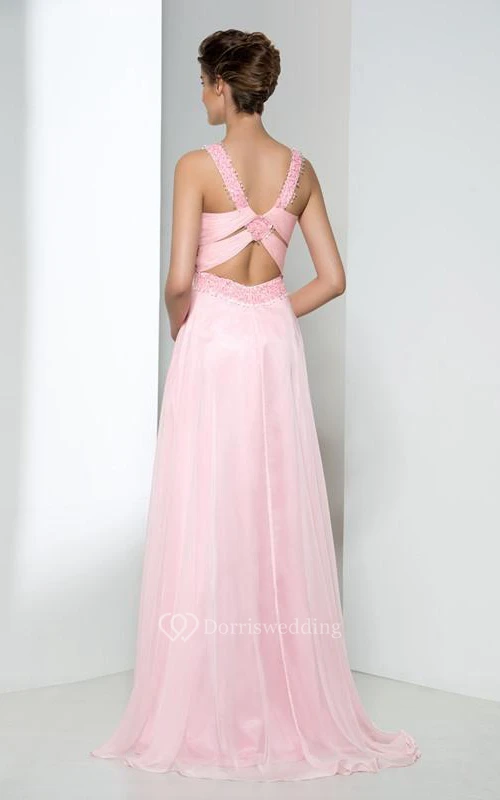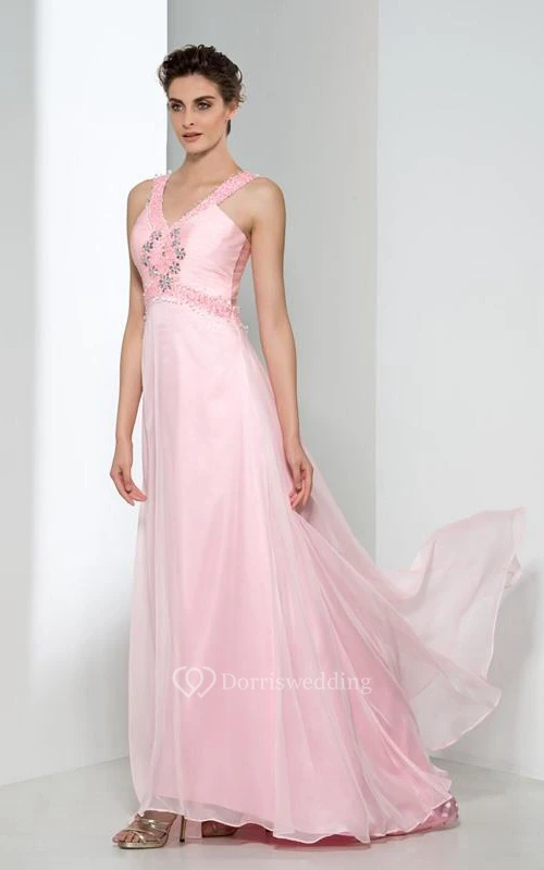V-Neck Beading Criss-Cross Straps Prom Dress