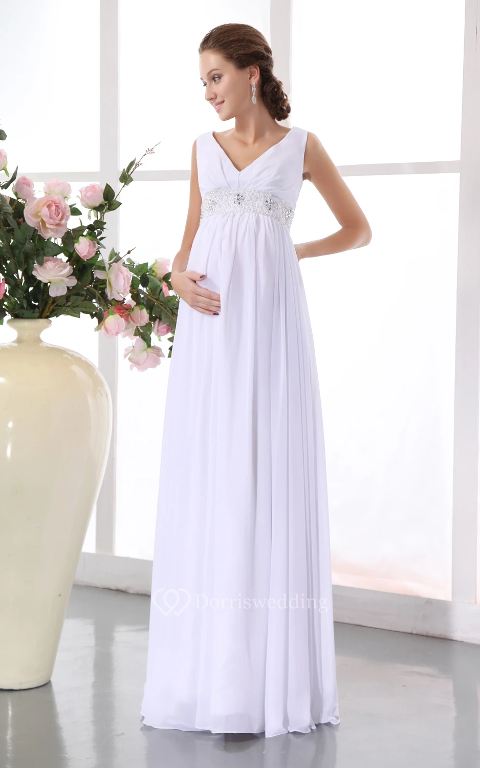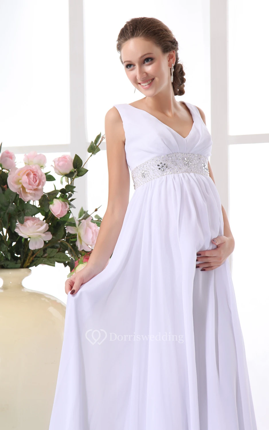 V-Neck Chiffon Dress With Pleating and Belted Waistband