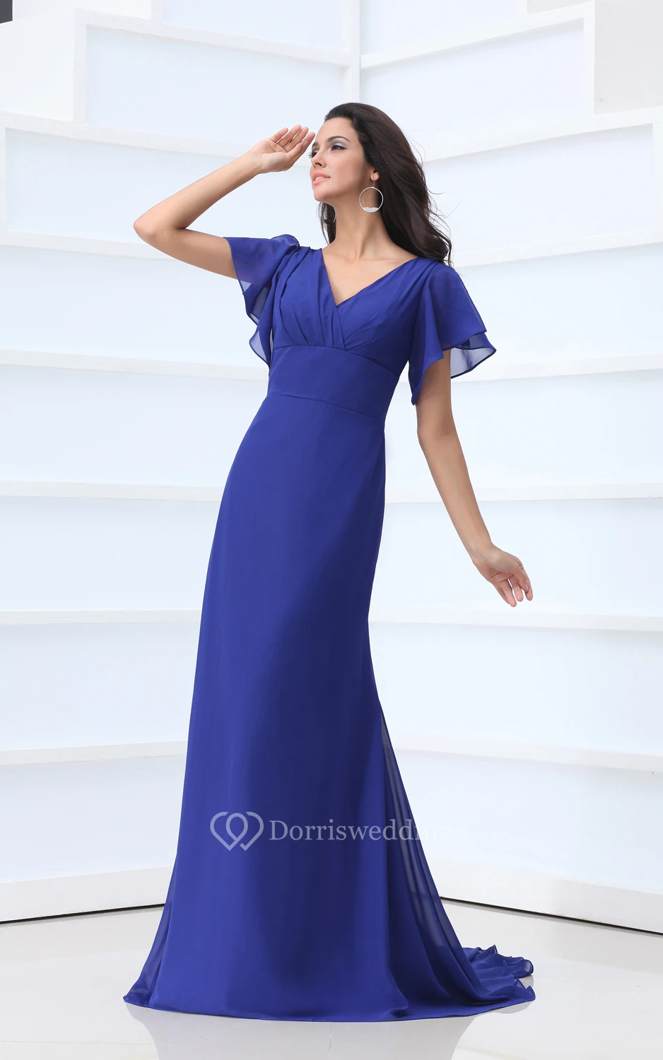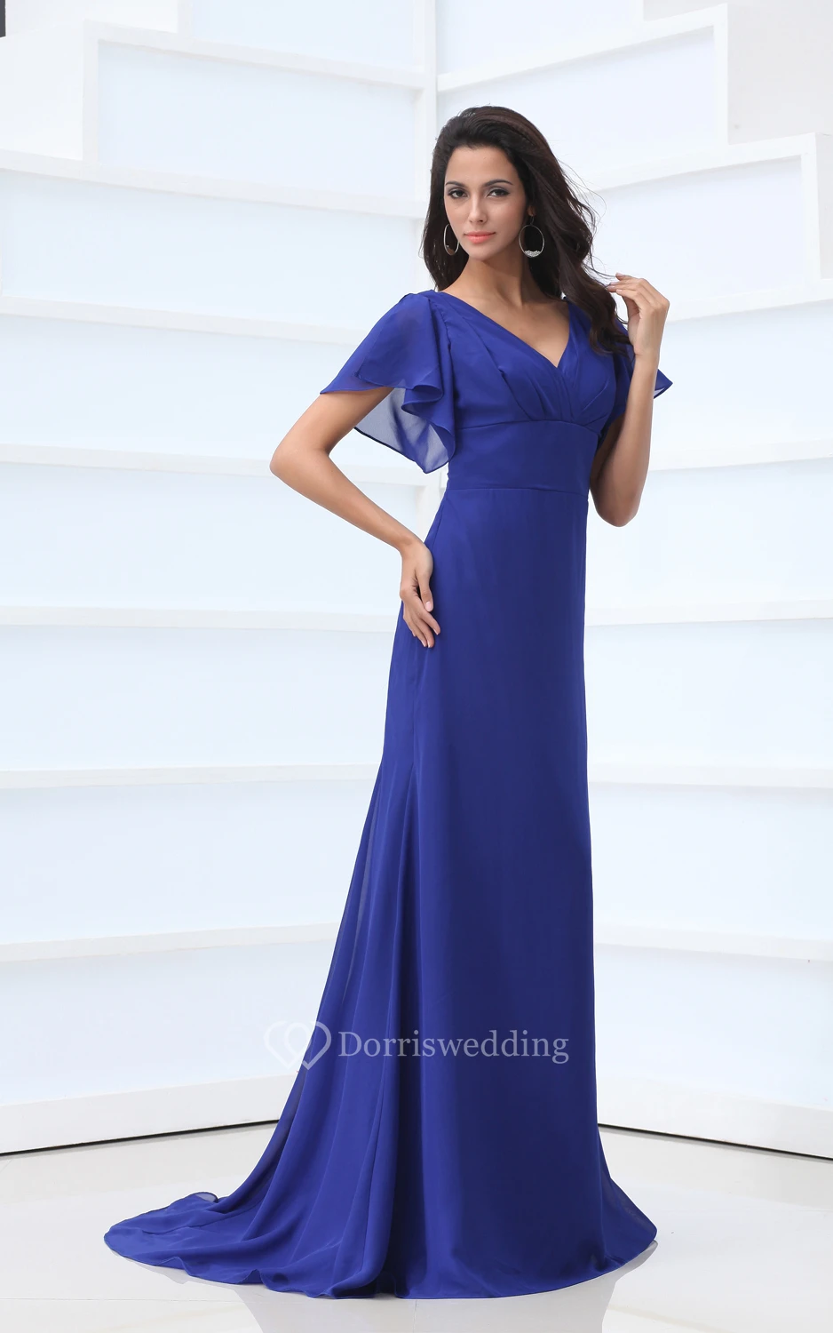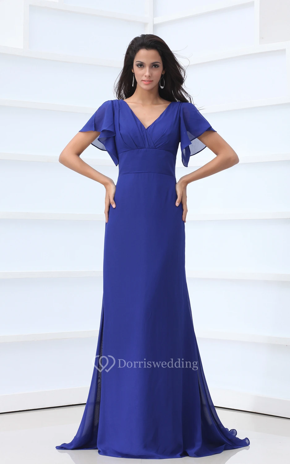 V-Neck Chiffon Floor-Length Dress With Bell-Sleeve