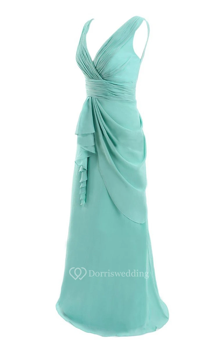 V-neck Drapped Chiffon A-line Gown With Ruched Band