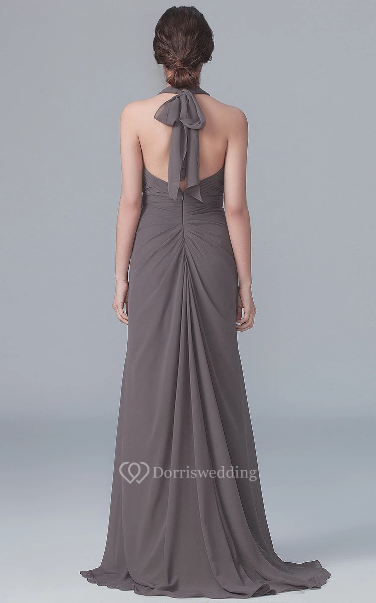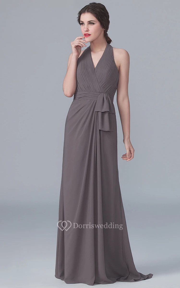 V-Neck Halter Graceful Asymmetric Dress With Bow