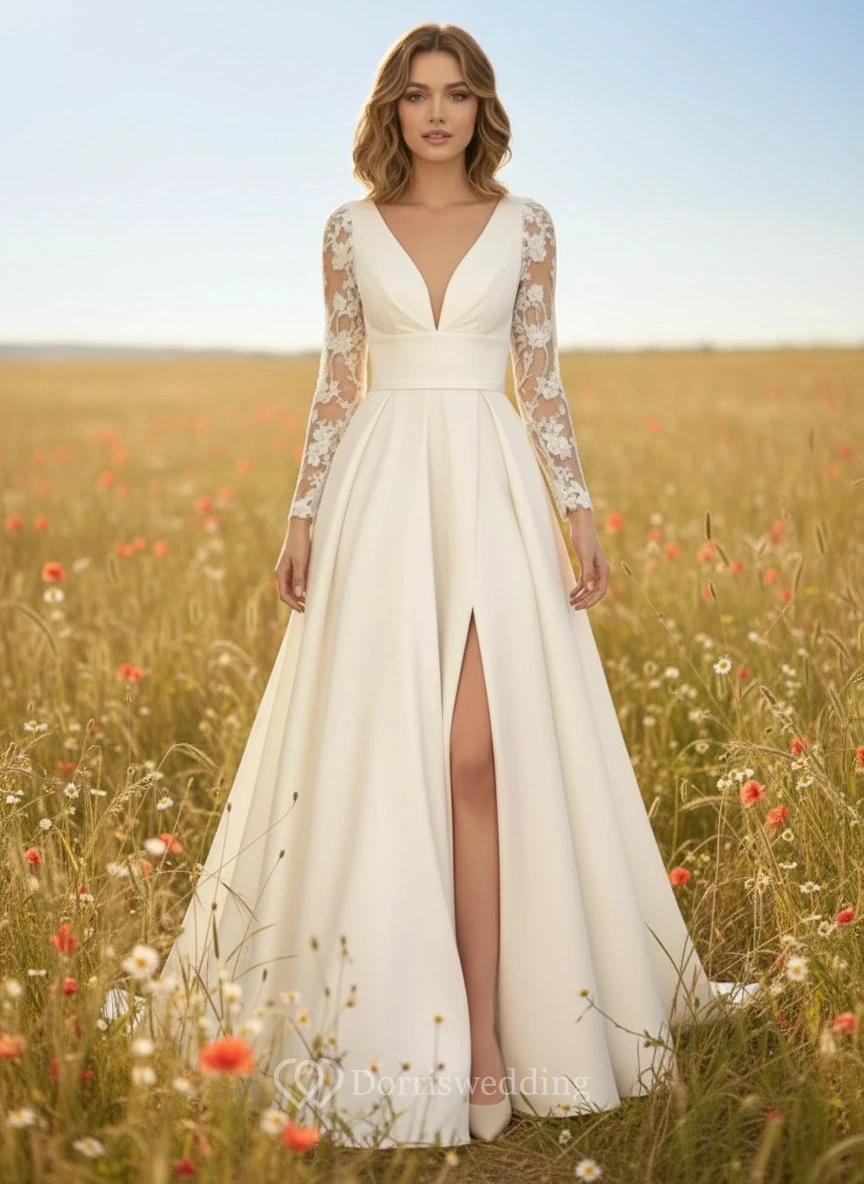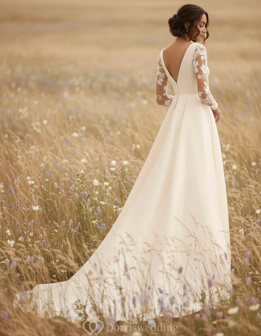 This wedding dress is exactly what I dreamed of - soft lace, elegant sleeves, and a perfect waistline.