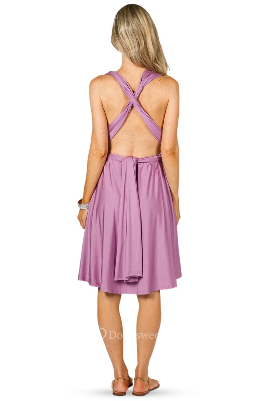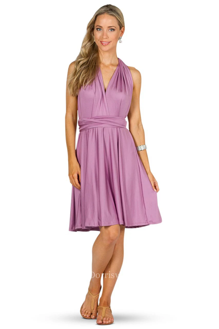 V-Neck Knee-Length Ruched Jersey Convertible Bridesmaid Dress With Straps