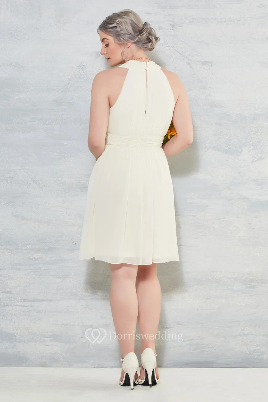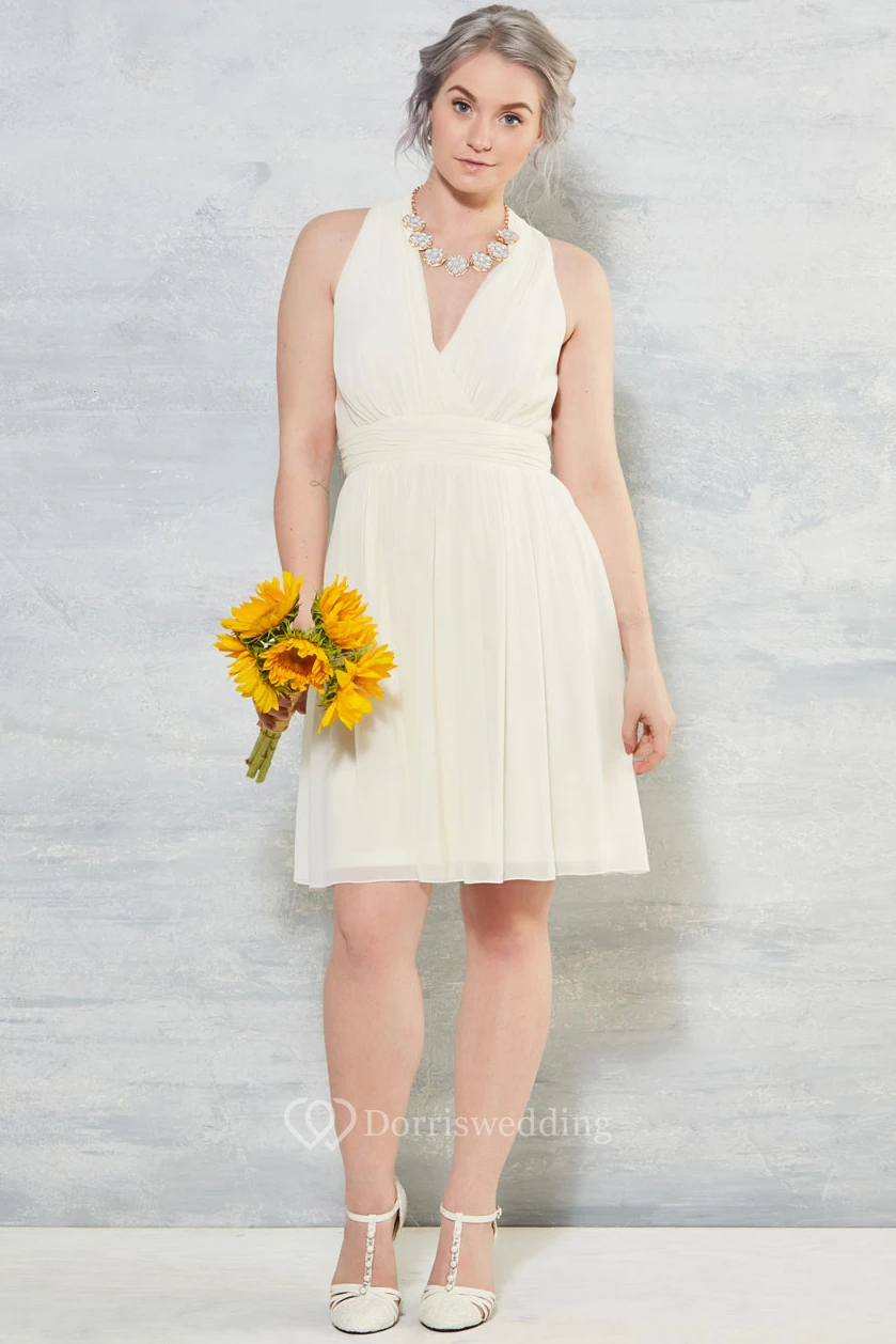 V-Neck Knee-Length Sleeveless Chiffon Wedding Dress With Ruching And Zipper