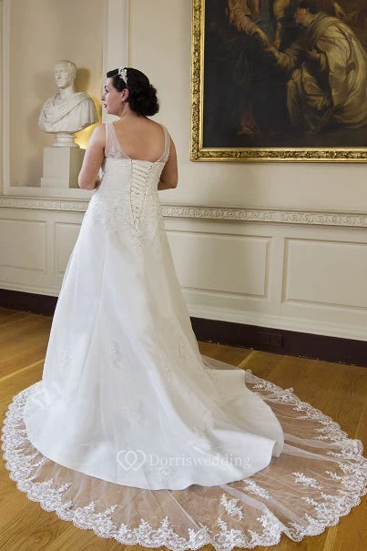 V Neck Lace Bridal Gown With Lace Up And Train
