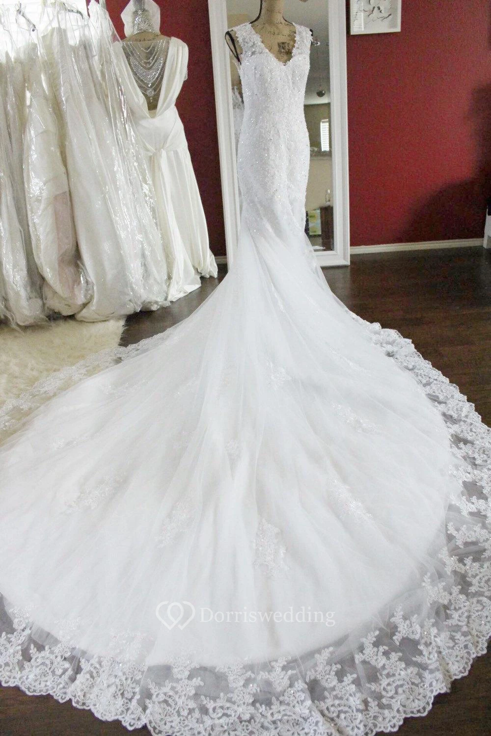 • Hemline/Train: Floor-length, Cathedral Train
