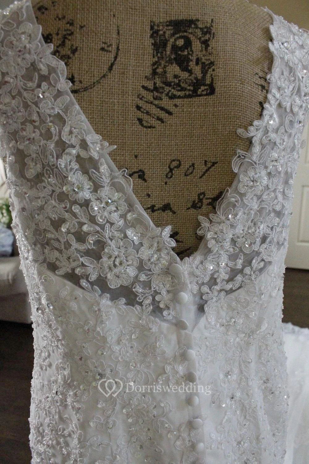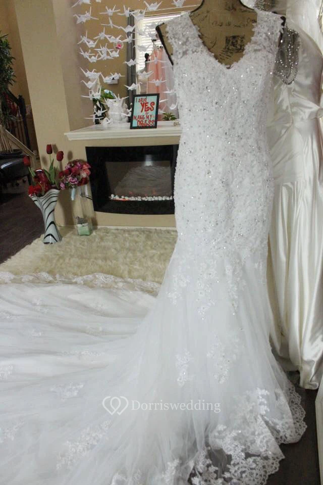 V-Neck Lace Mermaid Dress With Beadings and Chapel Train