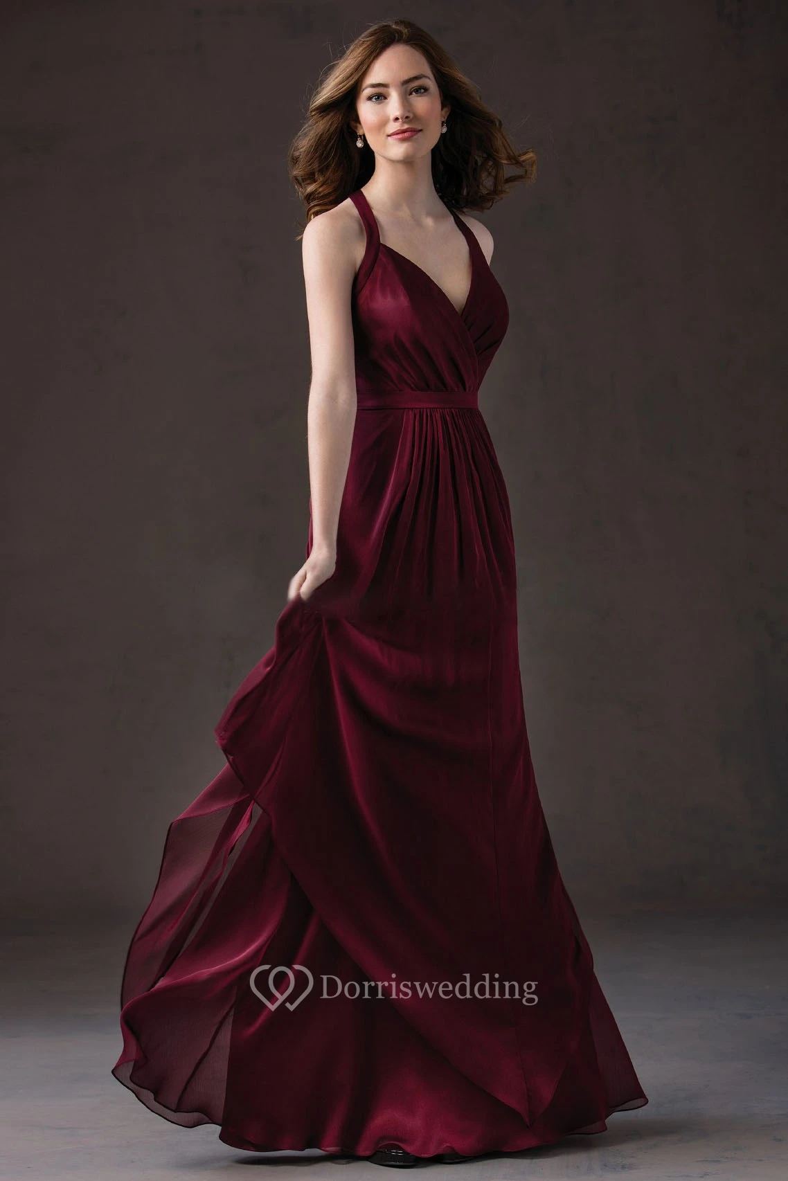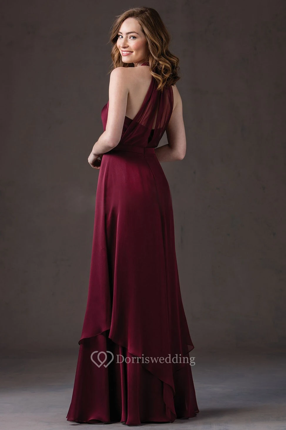 V-Neck Long Layered Gown With Pleats And Keyhole