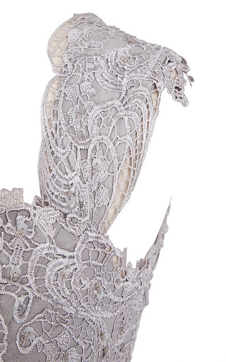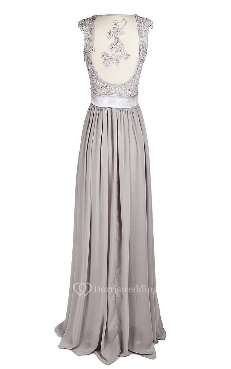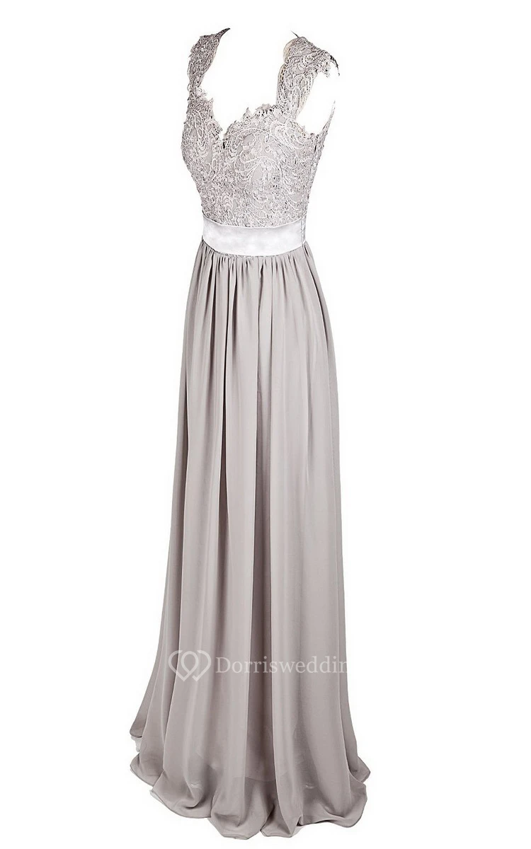 V-neck Long Ruffled Gown With Embroidered Bodice