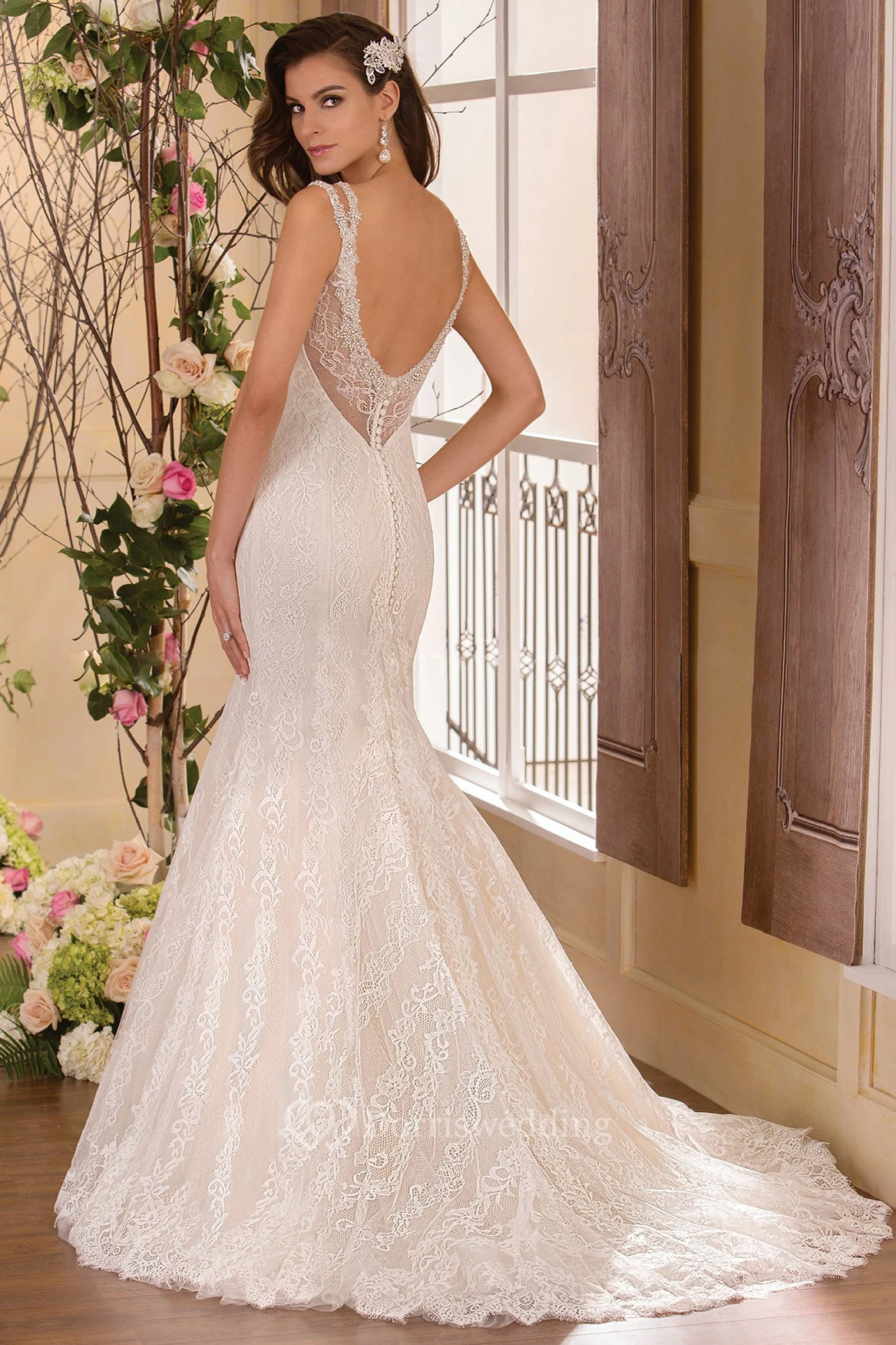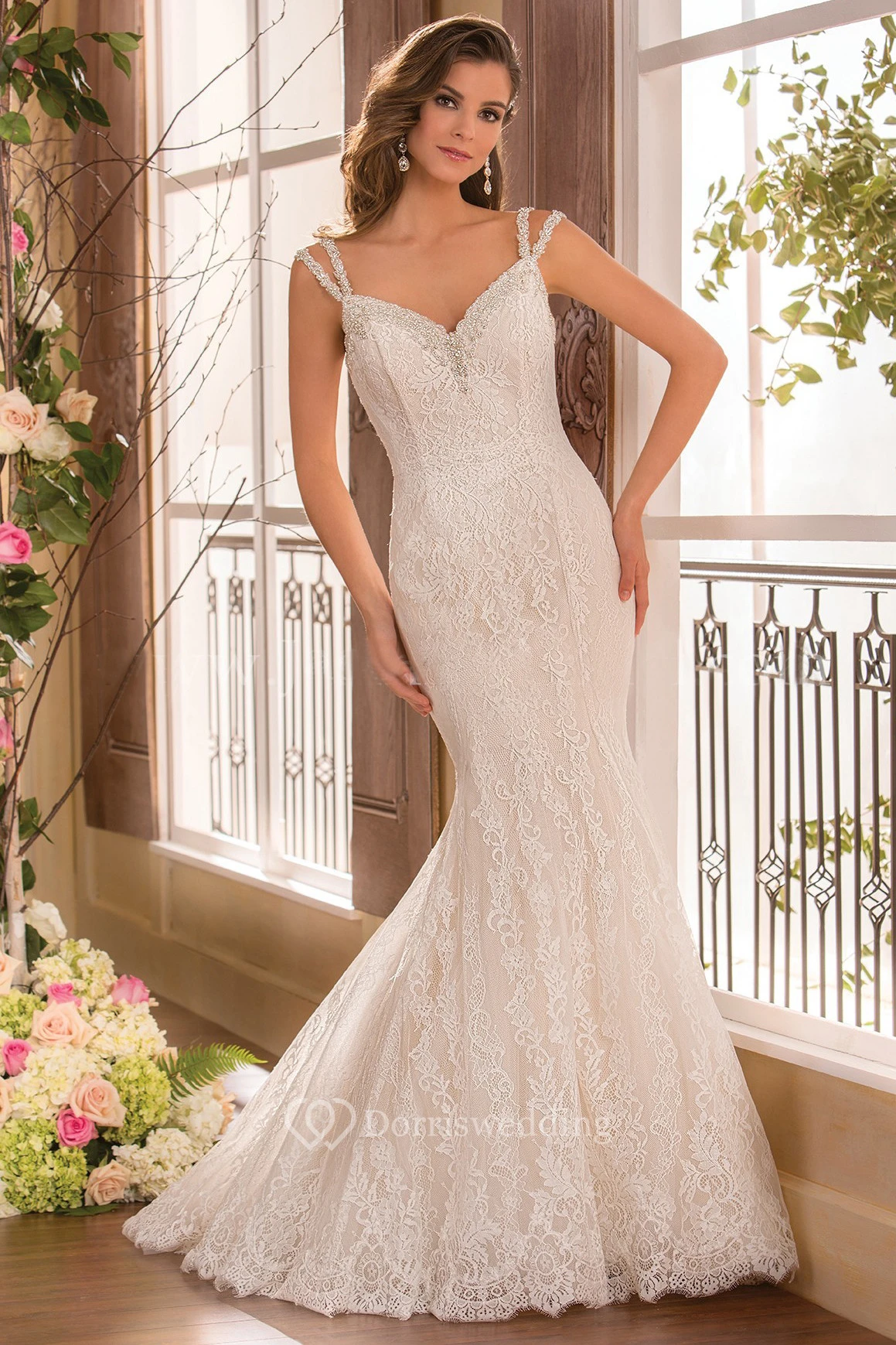 V-Neck Mermaid Gown With Beaded Straps And Scoop Back