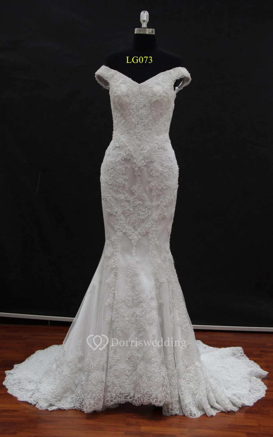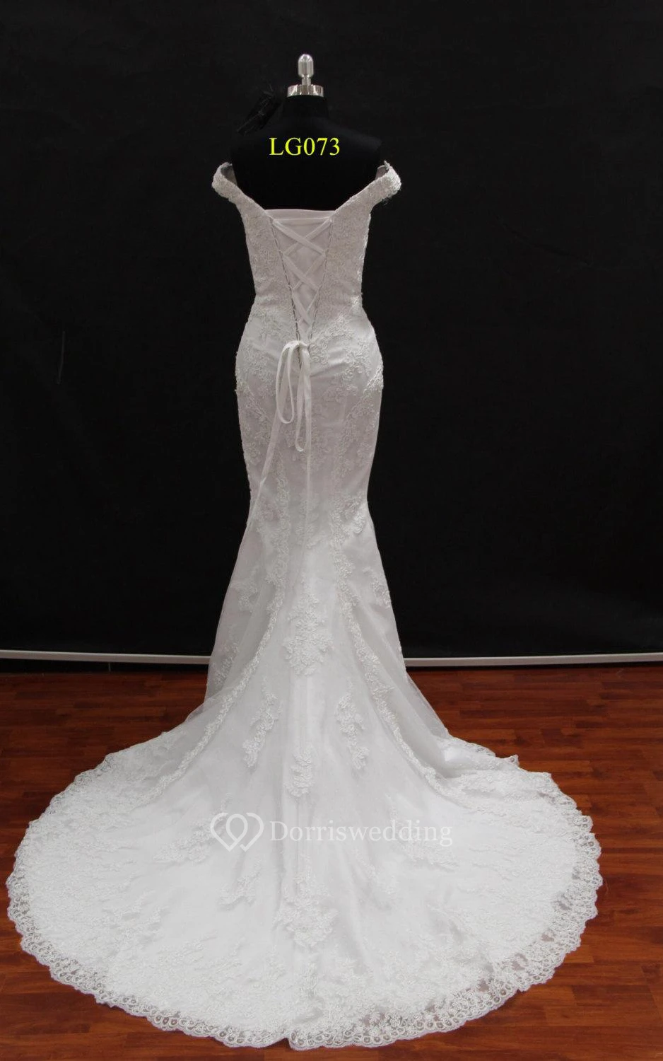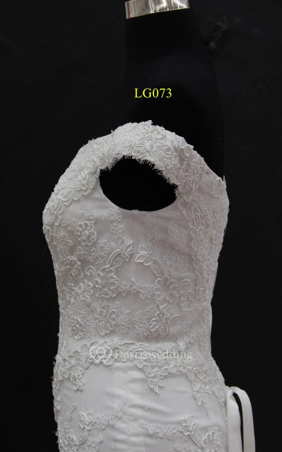 V-Neck Mermaid Lace Cap Sleeve Dress With Lace-Up Back