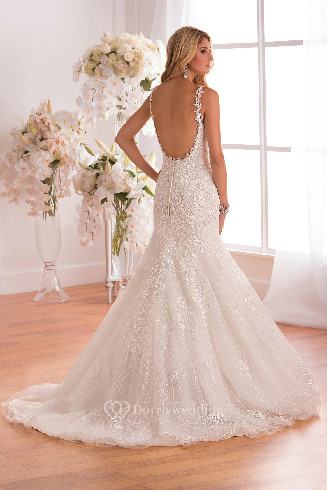 V-Neck Mermaid Wedding Dress Styles With Low Scoop Back And Appliques