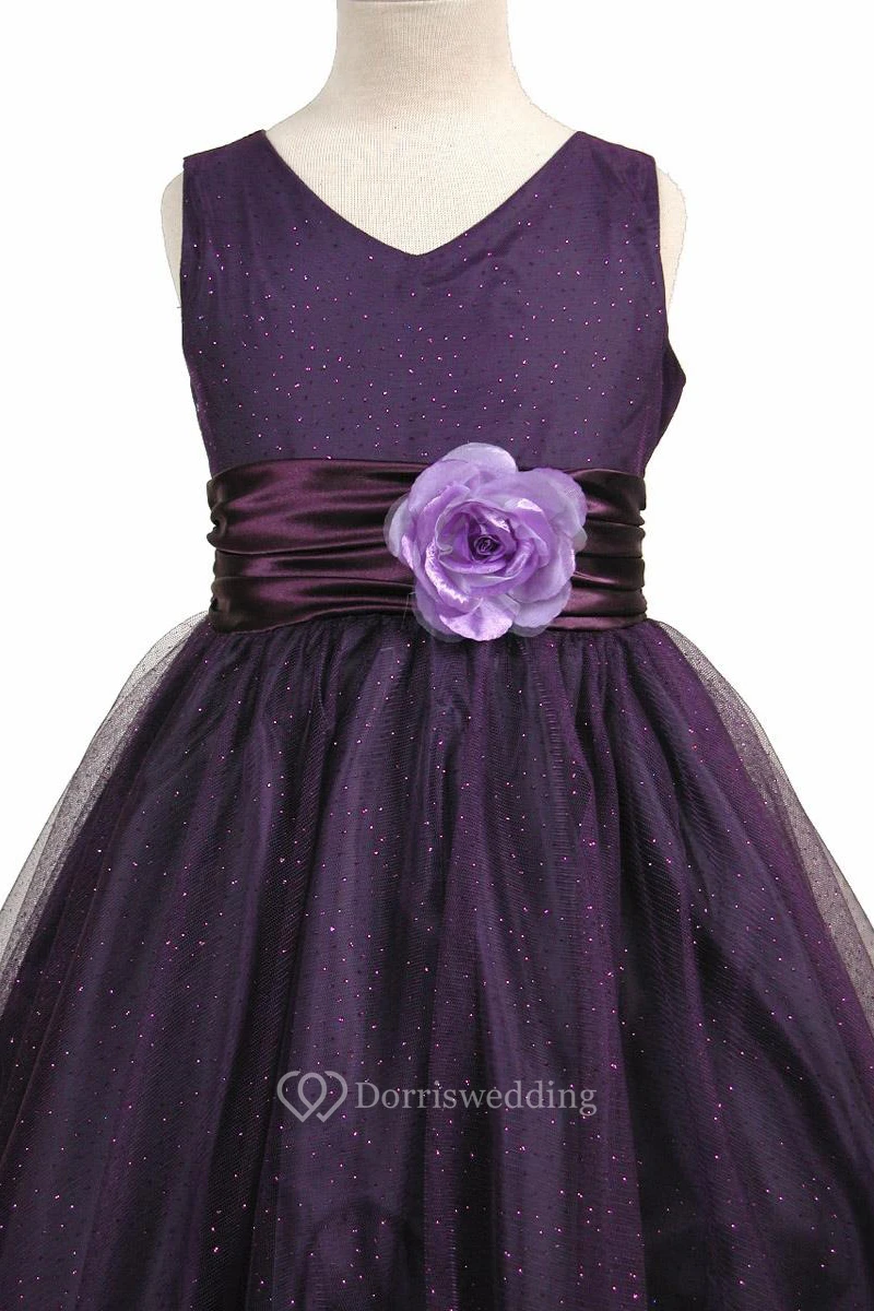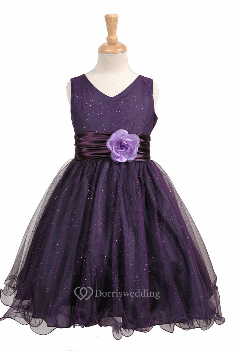 V-Neck Midi Tiered Charmeuse Flower Girl Dress