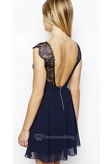 V-neck Mini Skirt Cute Sexy Chiffon Homecoming Dress With Open Back