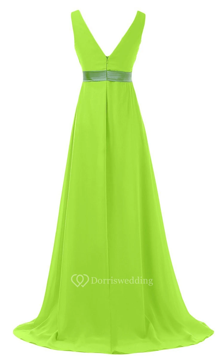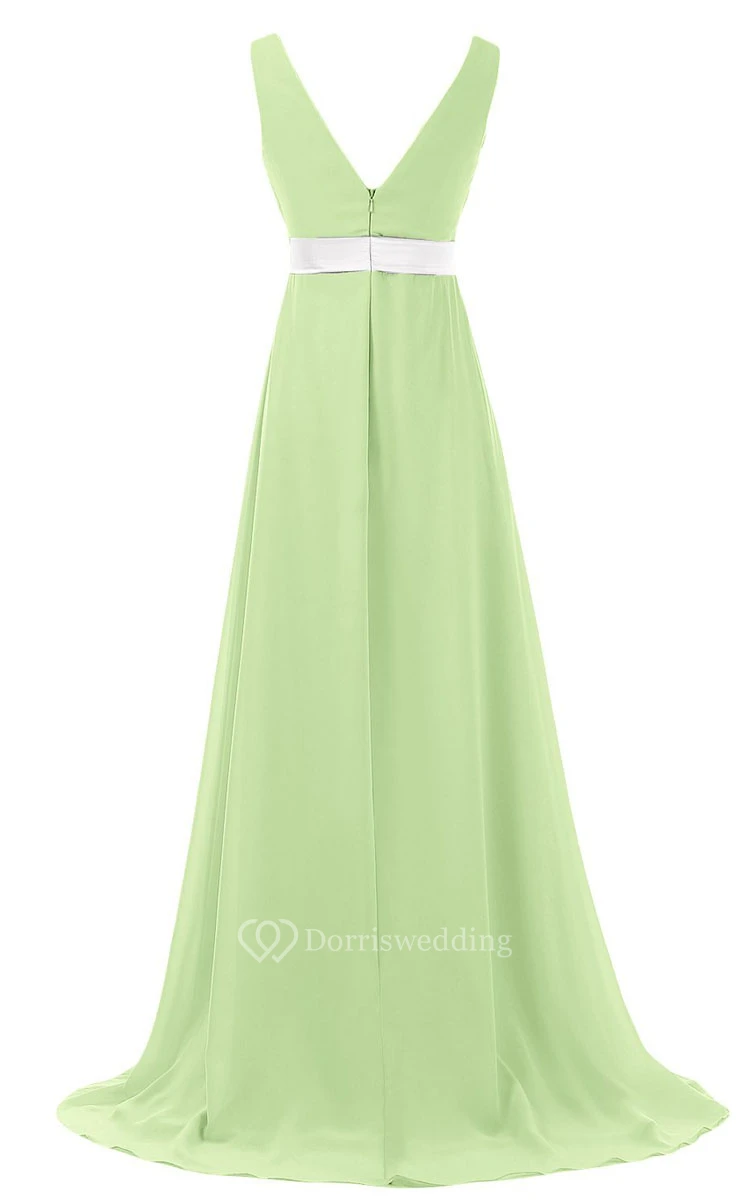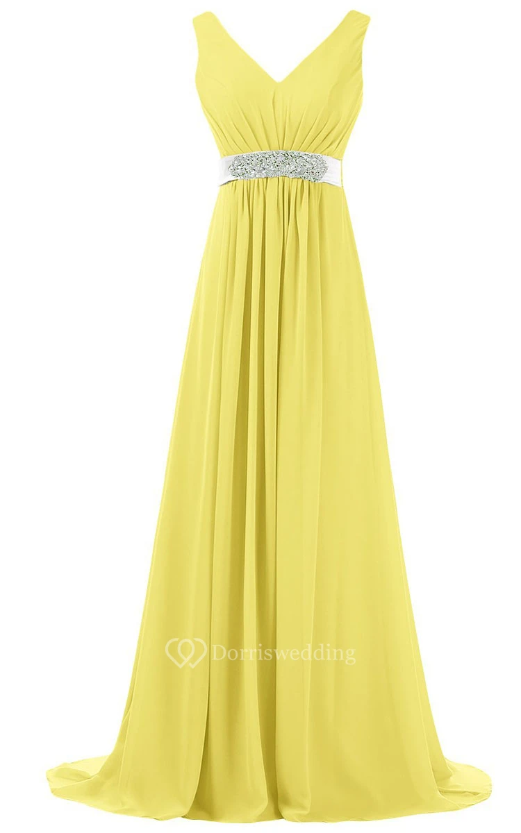V-neck Pleated Chiffon A-line Gown With Beaded Band
