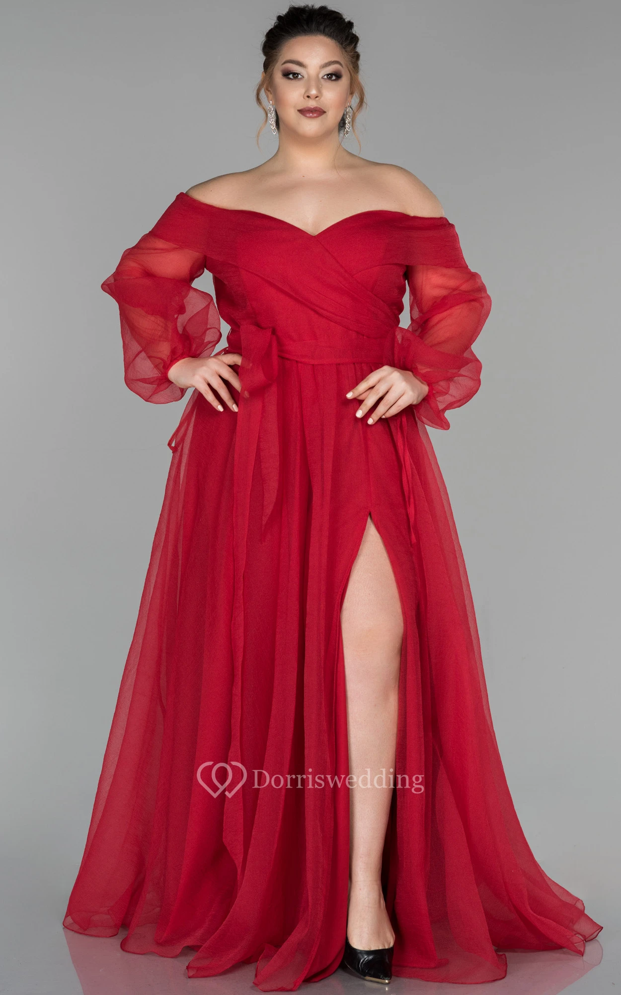 • Hemline/Train: Floor-length
