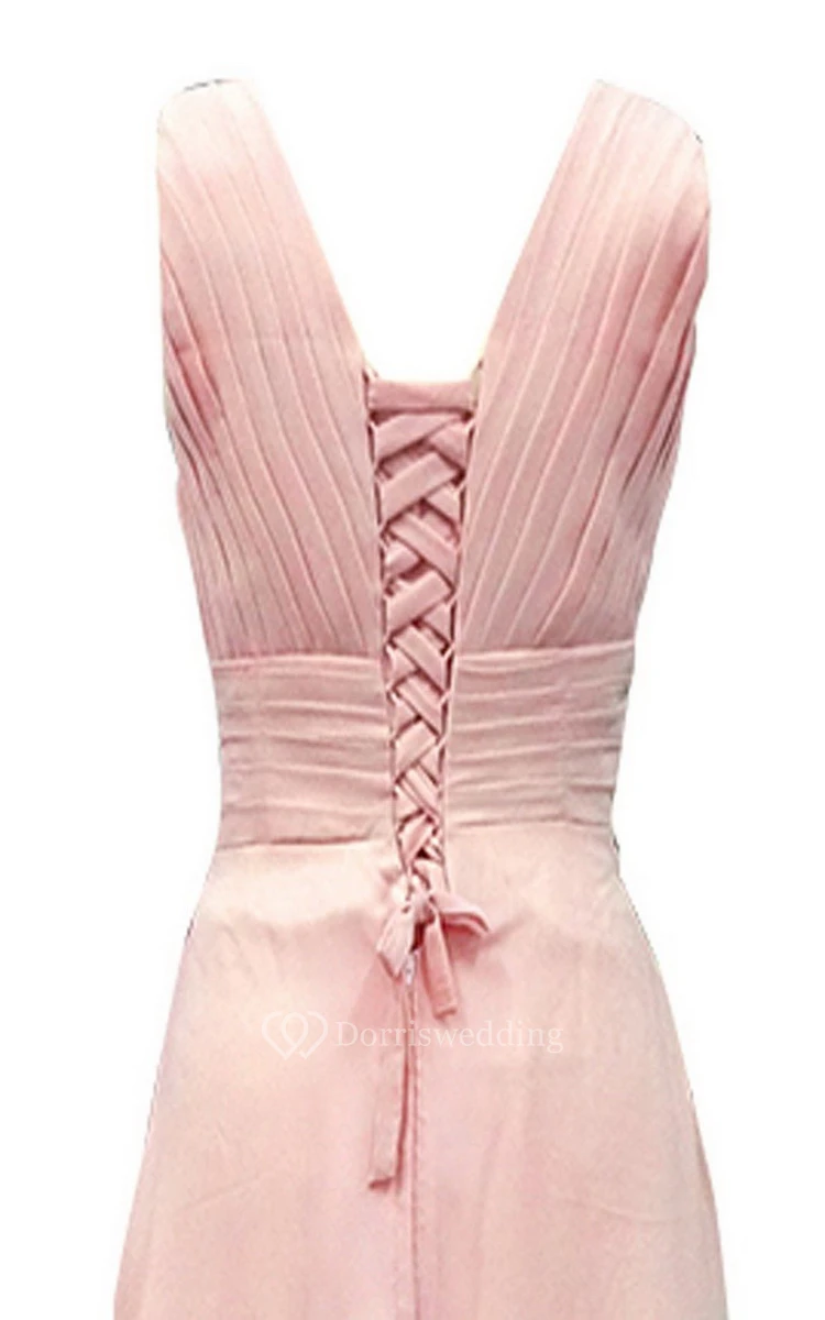 V-neck Ruched A-line Gown With Lace-up Back