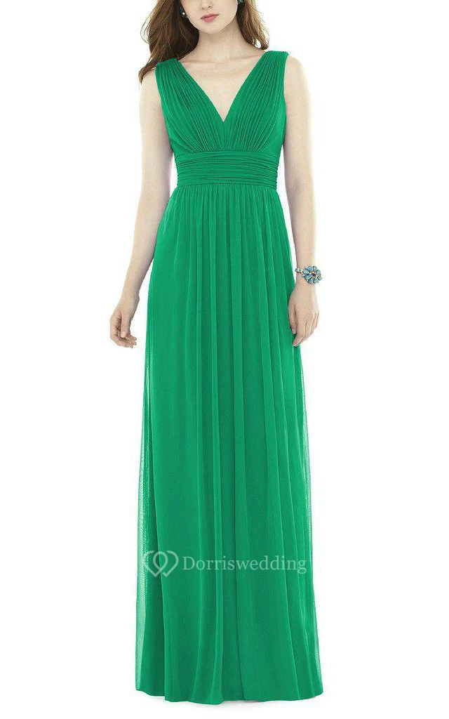 V-neck Ruched Chiffon Long Bridesmaid Dress