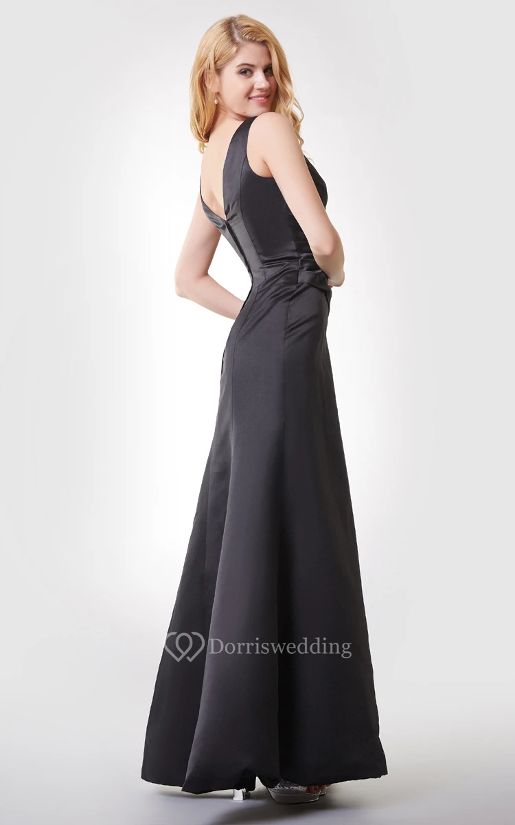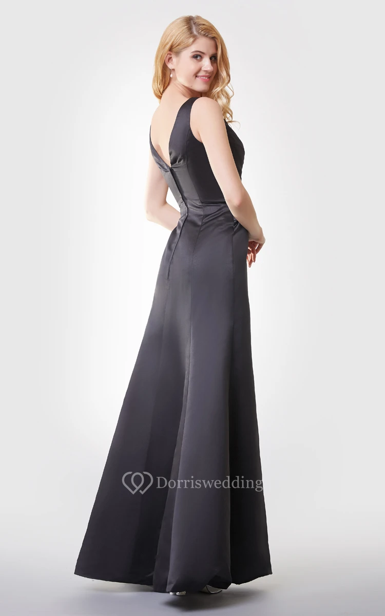 V-neck Ruched Long Chiffon Dress With V-back