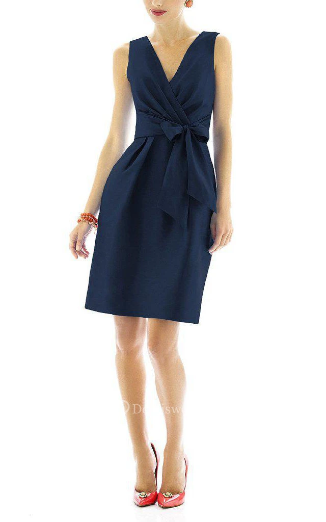 V-neck Satin Short Dress with Bow