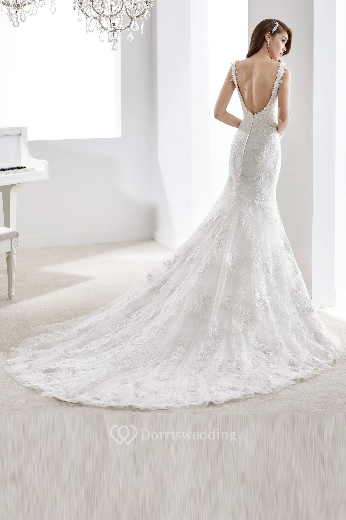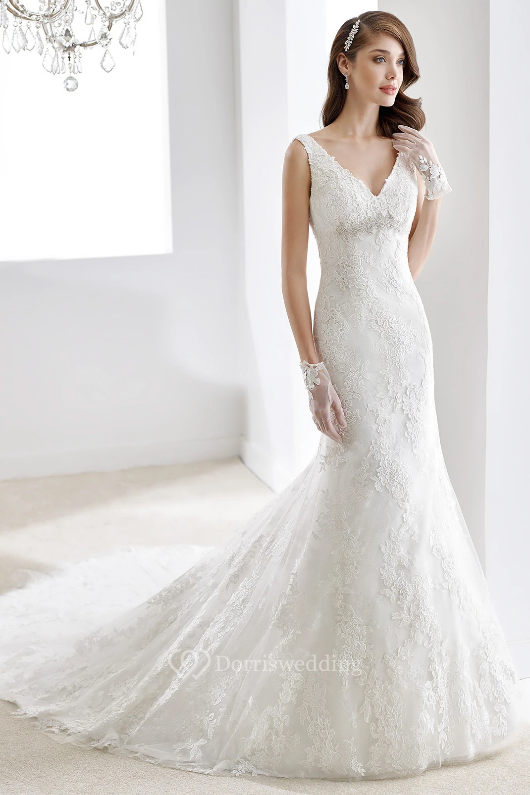 V-Neck Sheath Lace Gown With Beaded Details And Illusive Lace Back