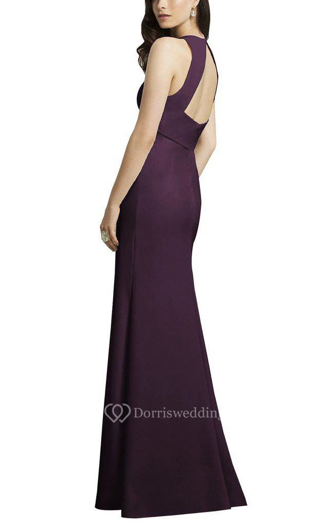 V-neck Sheath Long Dress with Keyhole Back
