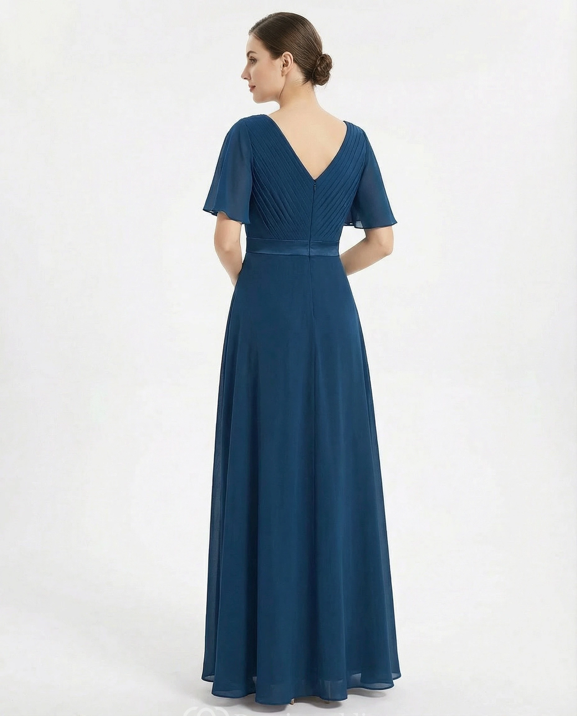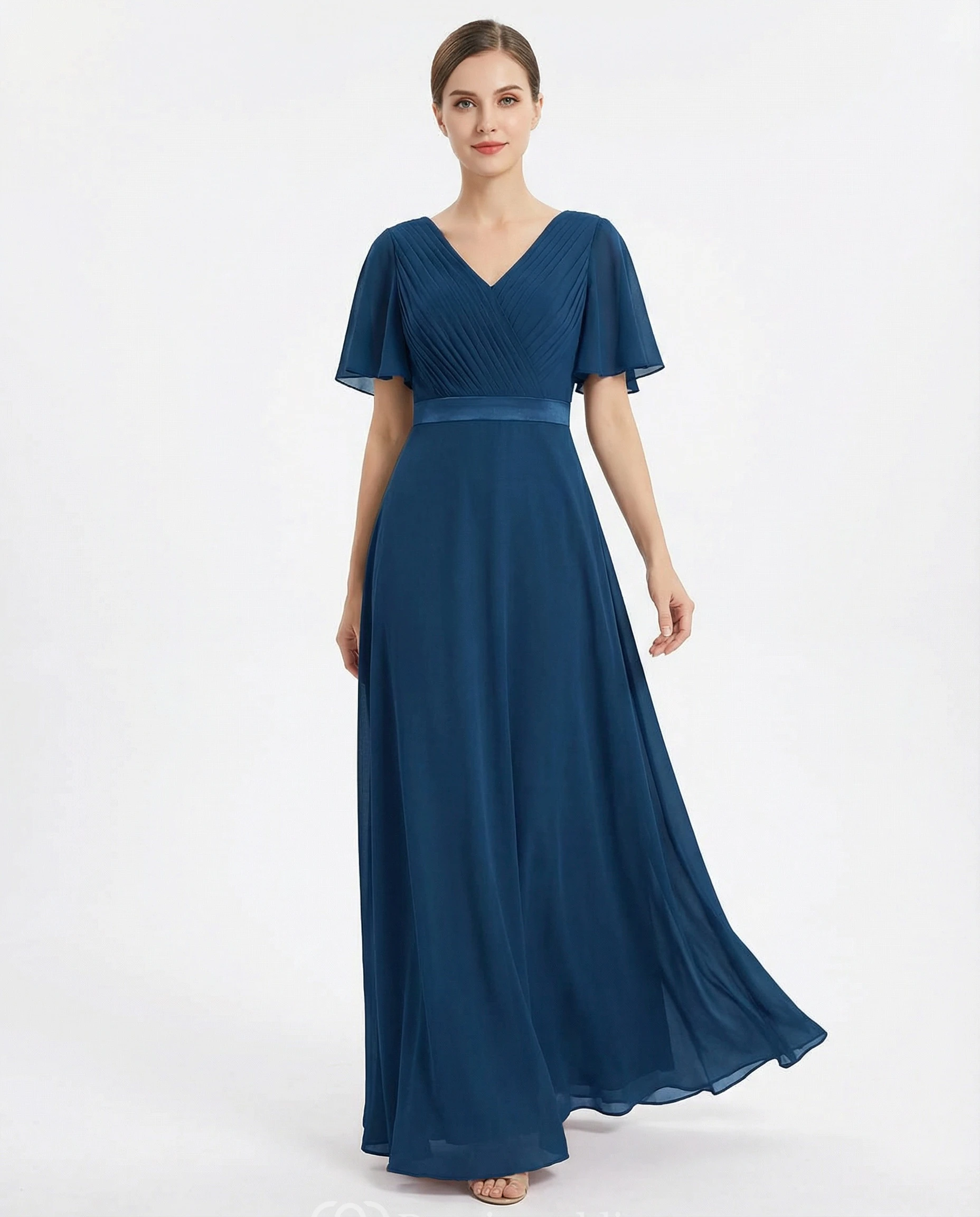 V-Neck Short Sleeve Chiffon Prom Mother Dress
