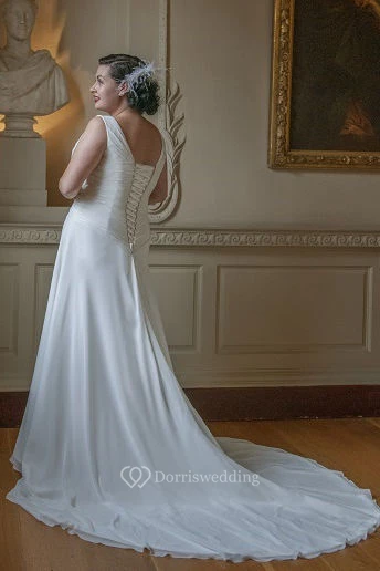 V Neck Sleeveless A-Line Bridal Gown With Lace Up And Train