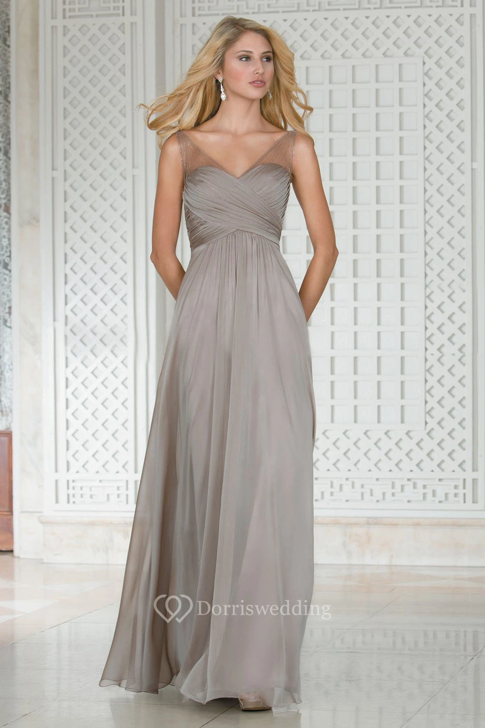 • Hemline/Train: Floor-length