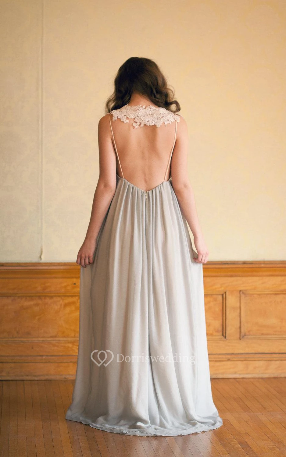 V-Neck Sleeveless Backless Long Chiffon Wedding Dress With Ruching