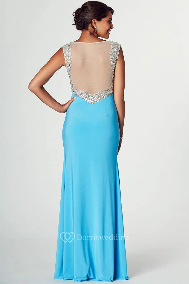 V-Neck Sleeveless Beaded Jersey Prom Dress