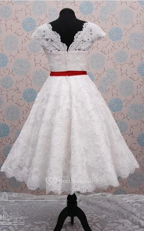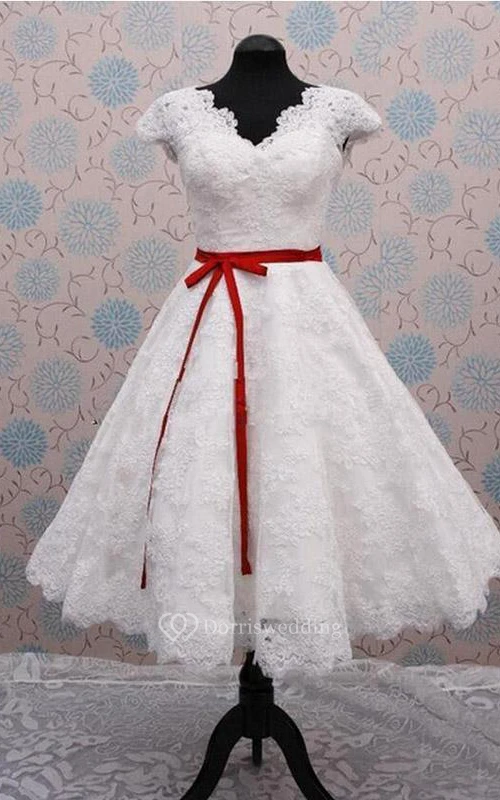 V-Neck Sleeveless Cap Lace Short Bridal Dress