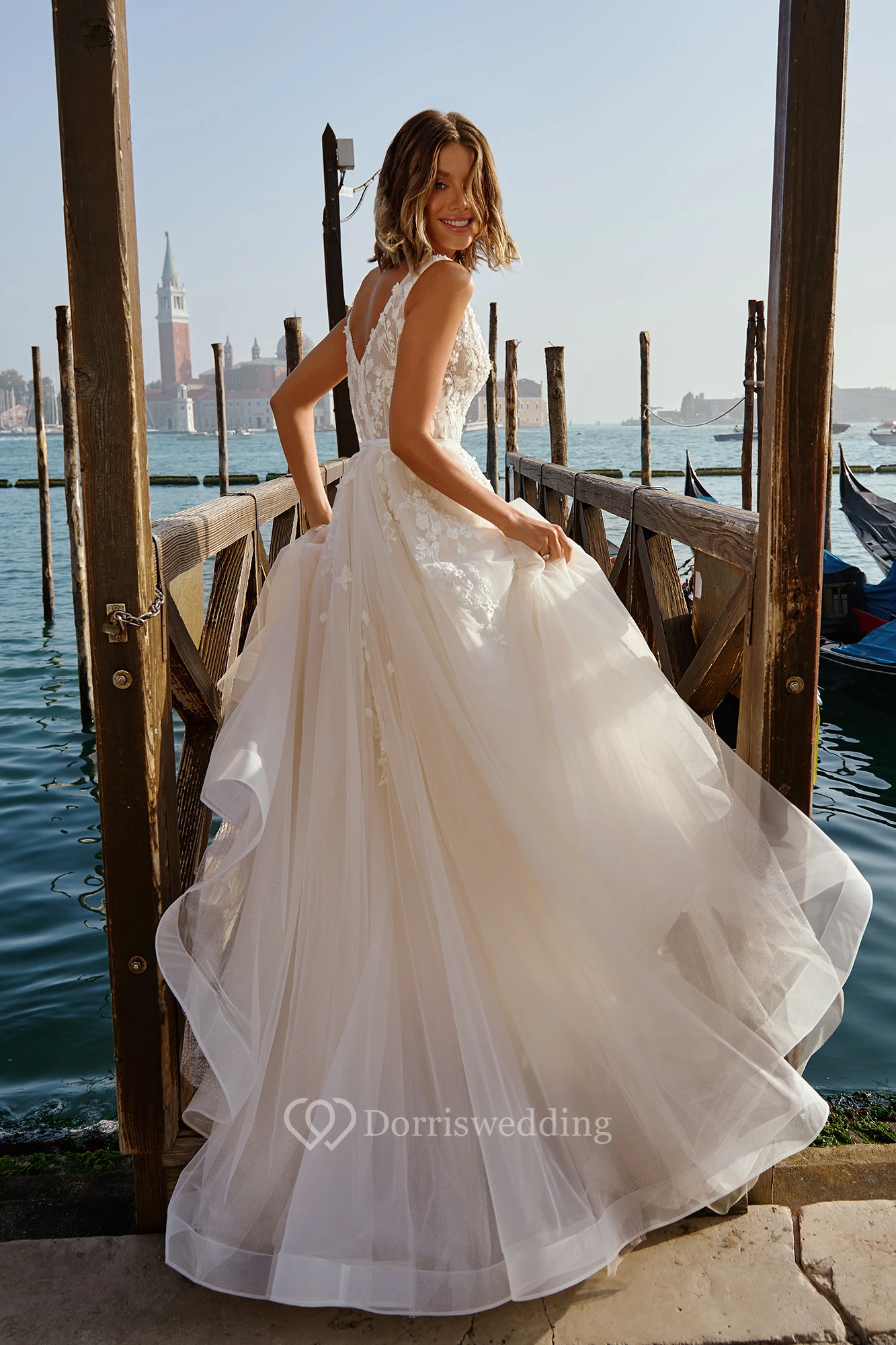 Beautiful wedding dress. The fabric drapes so nicely.