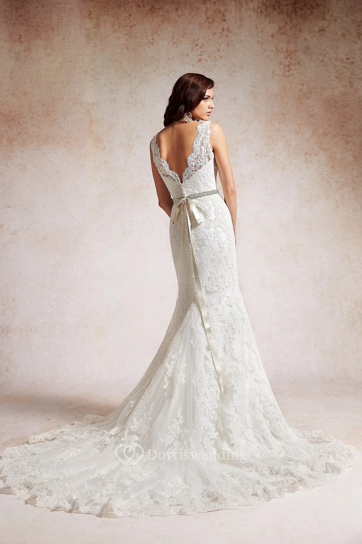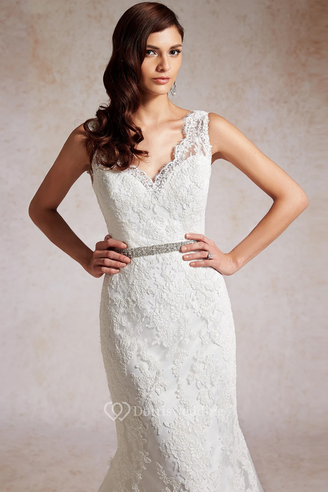 V-Neck Sleeveless Mermaid Wedding Dress With Sequins And Appliques