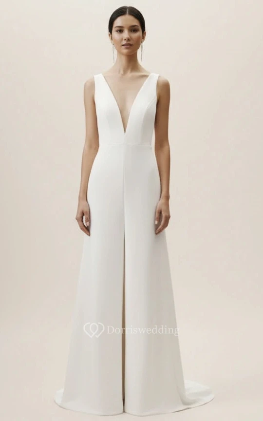 V Neck Sleeveless Narrow Hem Wedding Jumpsuit