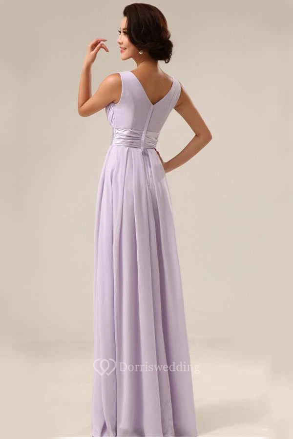 V Neck Sleeveless Pleated Long Chiffon Dress