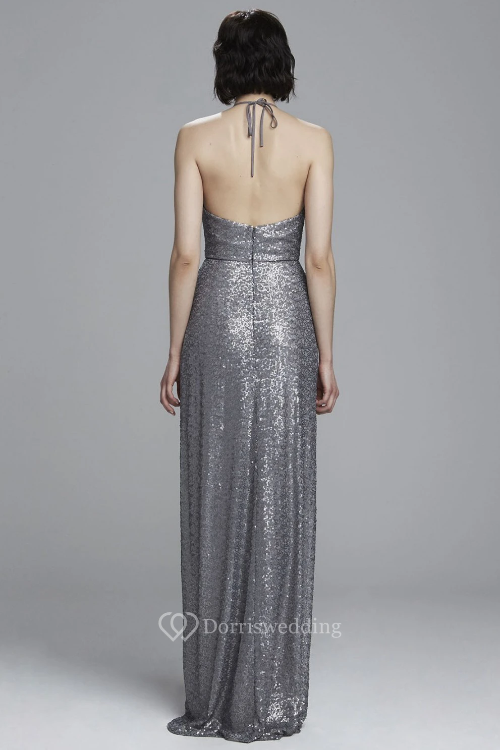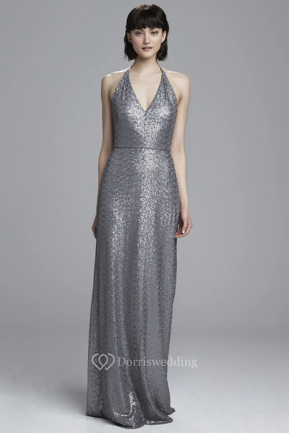 V-Neck Sleeveless Sequin Bridesmaid Dress With Straps