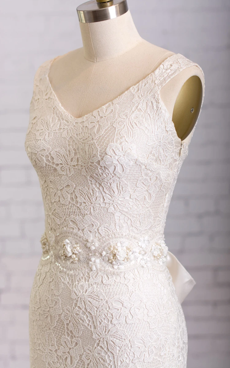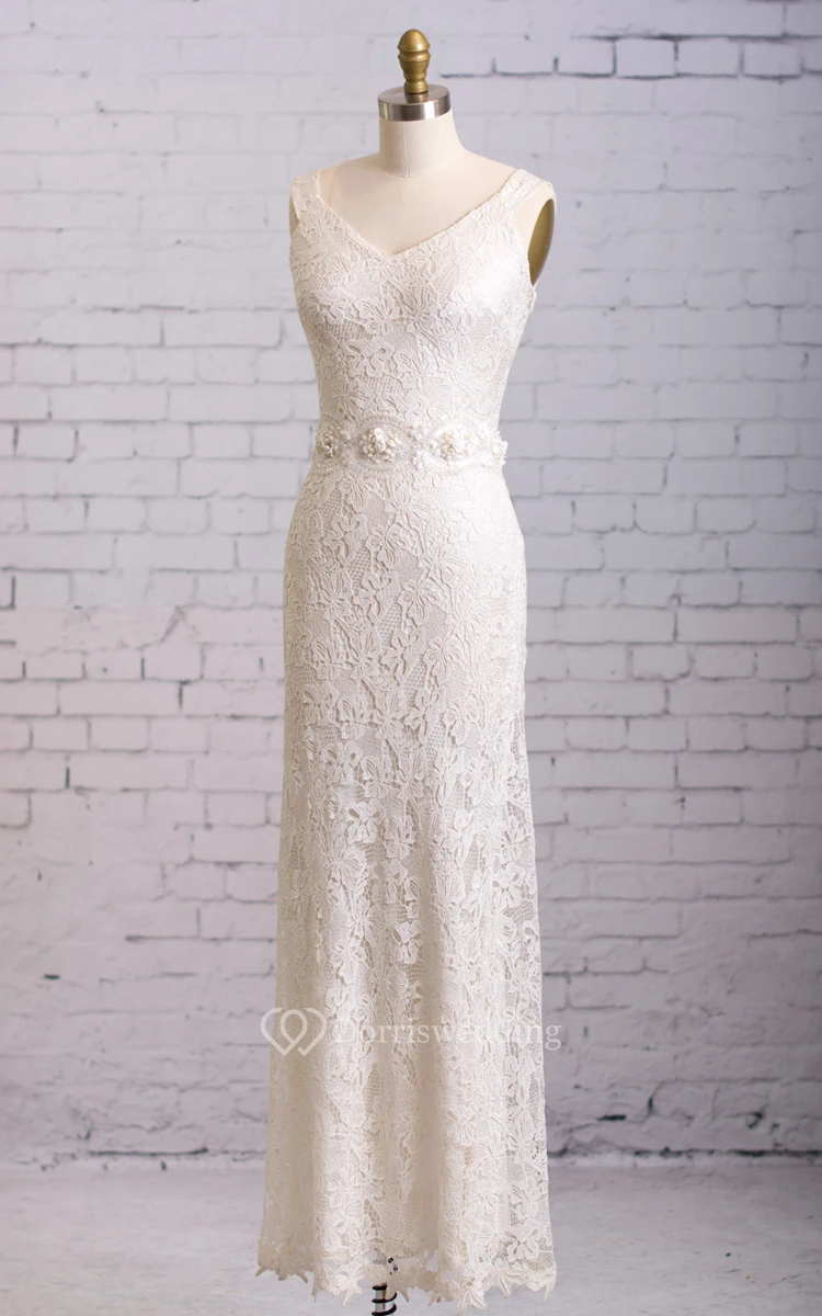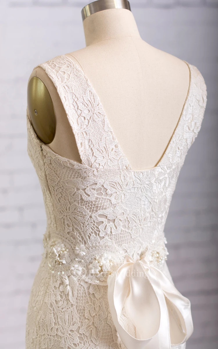 V-Neck Sleeveless Sheath With Bow And Beaded Belt