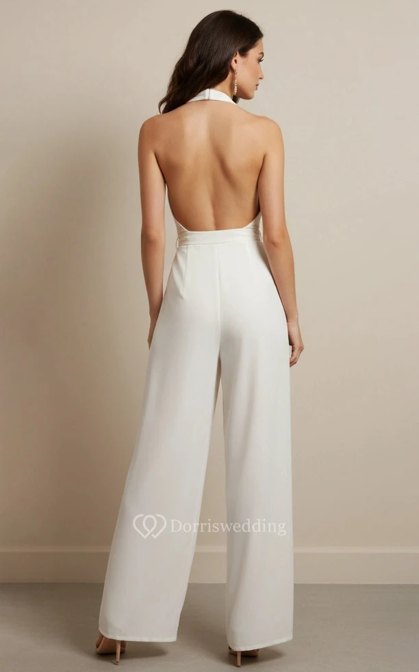 V-Neck Sleeveless Wide Leg Wedding Jumpsuit